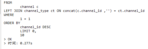 场景描述:因LEFTJOIN关联查询中,表A与表B的channel_id类型不一致(bigInt与varchar),导致查询效率极低,页面响应缓慢甚至崩溃。通过使用concat函数将bigInt类型转换为varchar类型,有效解决了数据类型不匹配的问题,显著提升了查询速度。