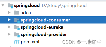 - 在主工程下创建一个名为 springcloud-consumer 的 Module,在其 pom.xml 中引入以下依赖