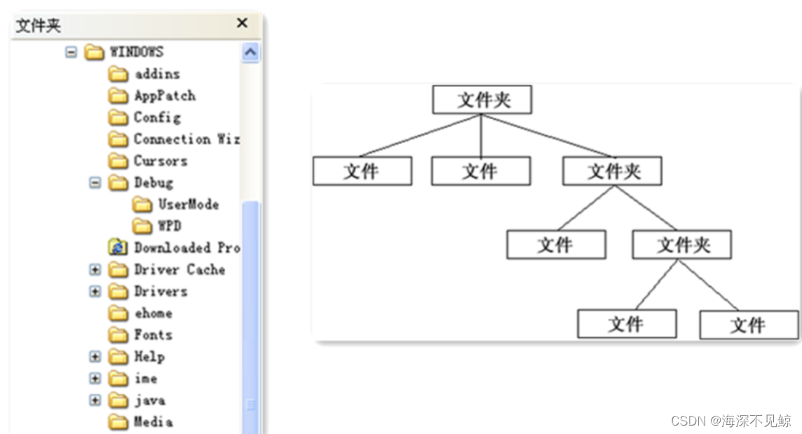 对于这个图片肯定会非常熟悉,上图我们可以看做是一个文件系统,对于这样的结构我们称之为树形结构。在树形结构中可以通过调用某个方法来遍历整个树,当我们找到某个叶子节点后,就可以对叶子节点进行相关的操作。可以将这颗树理解成一个大的容器,容器里面包含很多的成员对象,这些成员对象即可是容器对象也可以是叶子对象。但是由于容器对象和叶子对象在功能上面的区别,使得我们在使用的过程中必须要区分容器对象和叶子对象,但是这样就会给客户带来不必要的麻烦,作为客户而已,它始终希望能够一致的对待容器对象和叶子对象。