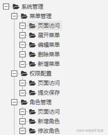 如下图,我们在访问别的一些管理系统时,经常可以看到类似的菜单。一个菜单可以包含菜单项(菜单项是指不再包含其他内容的菜单条目),也可以包含带有其他菜单项的菜单,因此使用组合模式描述菜单就很恰当,我们的需求是针对一个菜单,打印出其包含的所有菜单以及菜单项的名称。