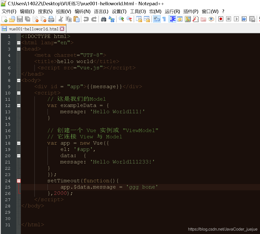2.引入文件并编写helloworld进行第一个vue程序编写