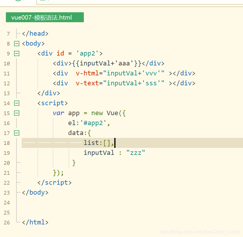 如下图:以 v-text,v-html,v-model 这类以v开头的表达式里面都是放js表达式而不是单纯的字符串
