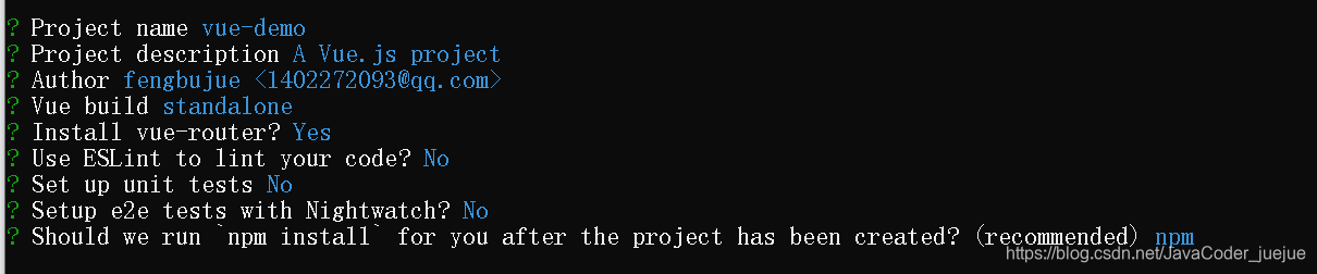 创建一个文件夹在该路径下执行 vue init webpack vue-demo