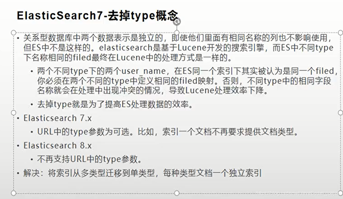 7已经把类型概念作为过期内容,8将彻底废弃,以后一个索引就一个类型,原因如下