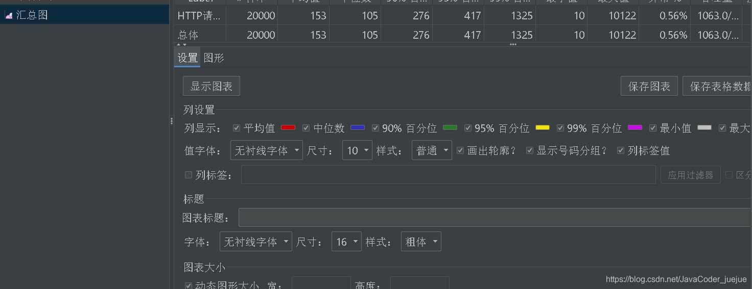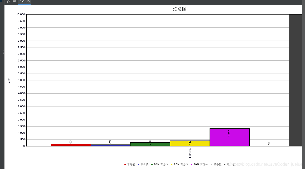 可以看到单个请求完成的平均完成时间,以及99%请求的完成的时间都是在1325毫秒内,还有异常发生比率