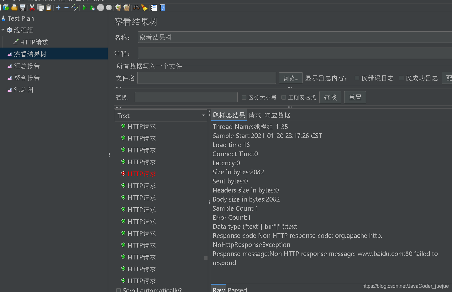 看到结果树中只要一个请求失败,大概率还是因为网络波动的原因