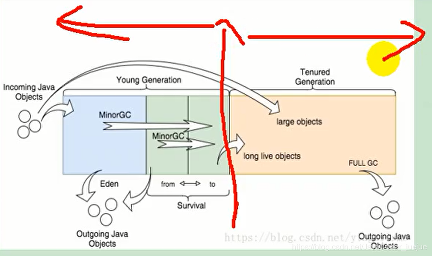 我们先来屡屡,为什么需要把堆分代?不分代不能完成他所做的事情么?其实不分代完全可以,分代的唯一理由就是优化GC性能。你先想想,如果没有分代,那我们所有的对象都在一块,GC的时候我们要找到哪些对象没用,这样就会对堆的所有区域进行扫描。而我们的很多对象都是朝生夕死的,如果分代的话,我们把新创建的对象放到某一地方,当GC的时候先把这块存“朝生夕死”对象的区域进行回收,这样就会腾出很大的空间出来。