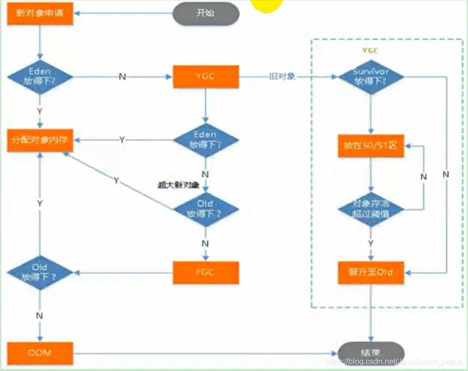 下图体现了大致的流程,左侧新生代,右侧老年代