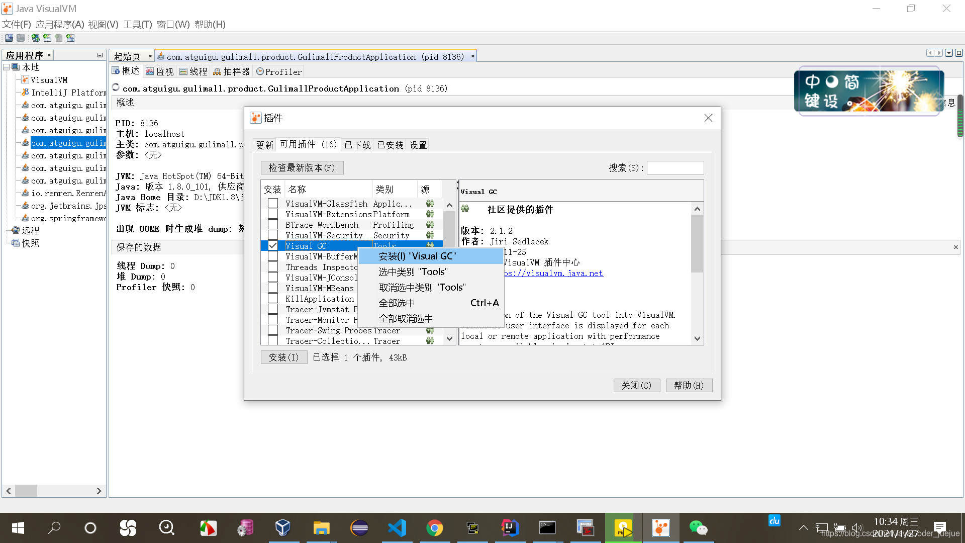 本文介绍JVisualVM的使用方法,包括启动、配置插件中心地址、安装垃圾回收监控插件等内容。通过实例展示了如何利用该工具进行性能监控,特别关注垃圾回收、CPU使用率、堆内存使用情况等关键指标。