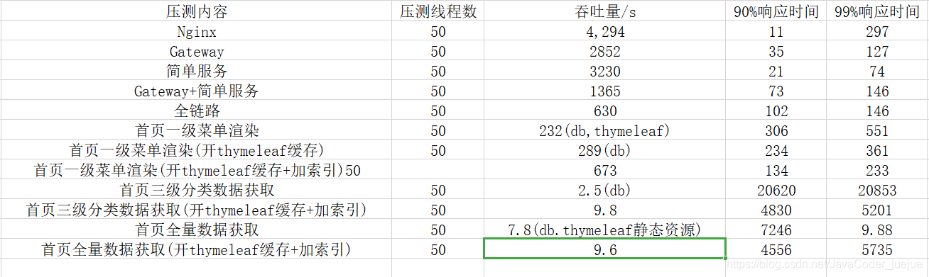 在上面做了开启tymeleaf缓存,调整日志级别为error及添加索引后再来重新压测之前的请求