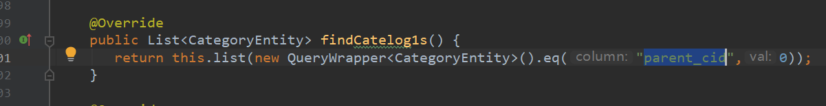 List<CategoryEntity> categoryEntities = this.list(new QueryWrapper<CategoryEntity>().eq("parent_cid", 0));