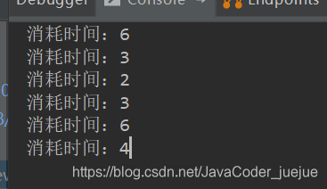 System.out.println("消耗时间:"+(System.currentTimeMillis()-l));