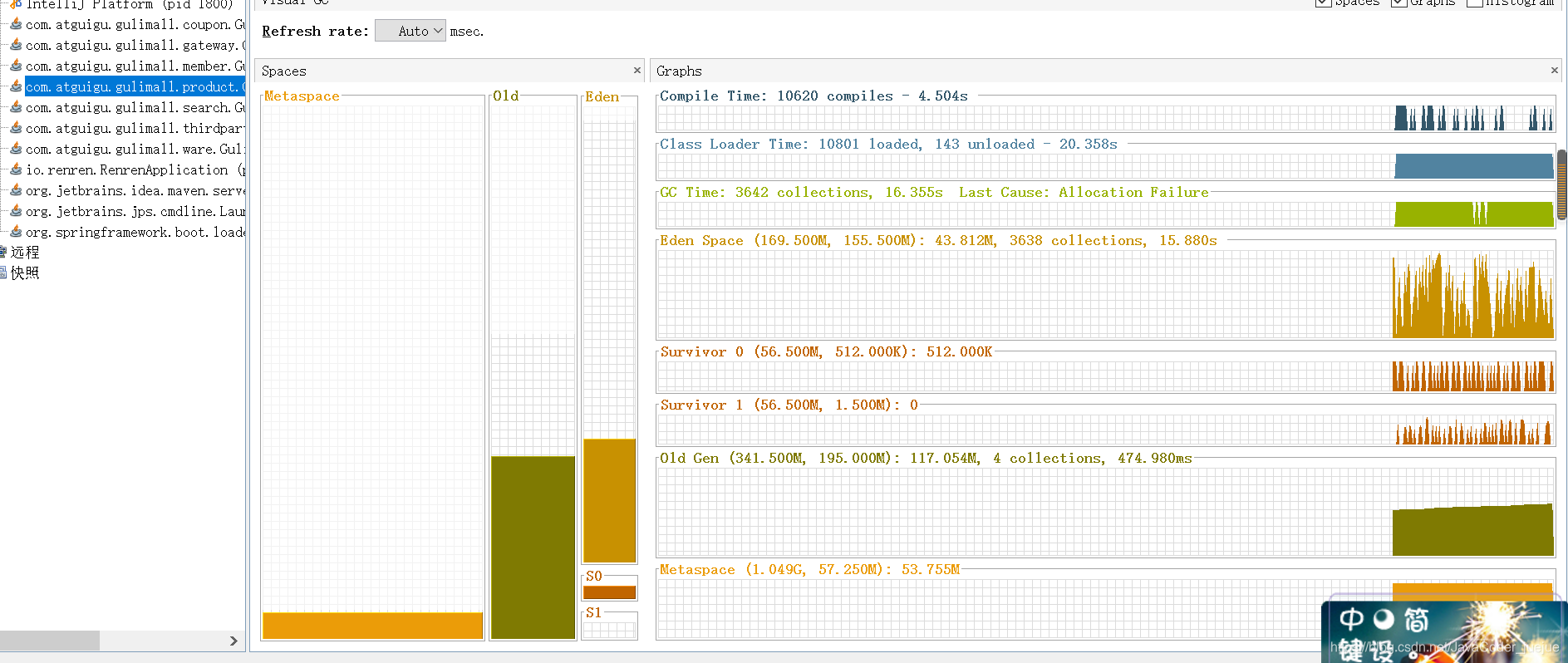 打开jvisualvm发现minor gc因为伊甸园区内存小所以很频繁,非常影响效率