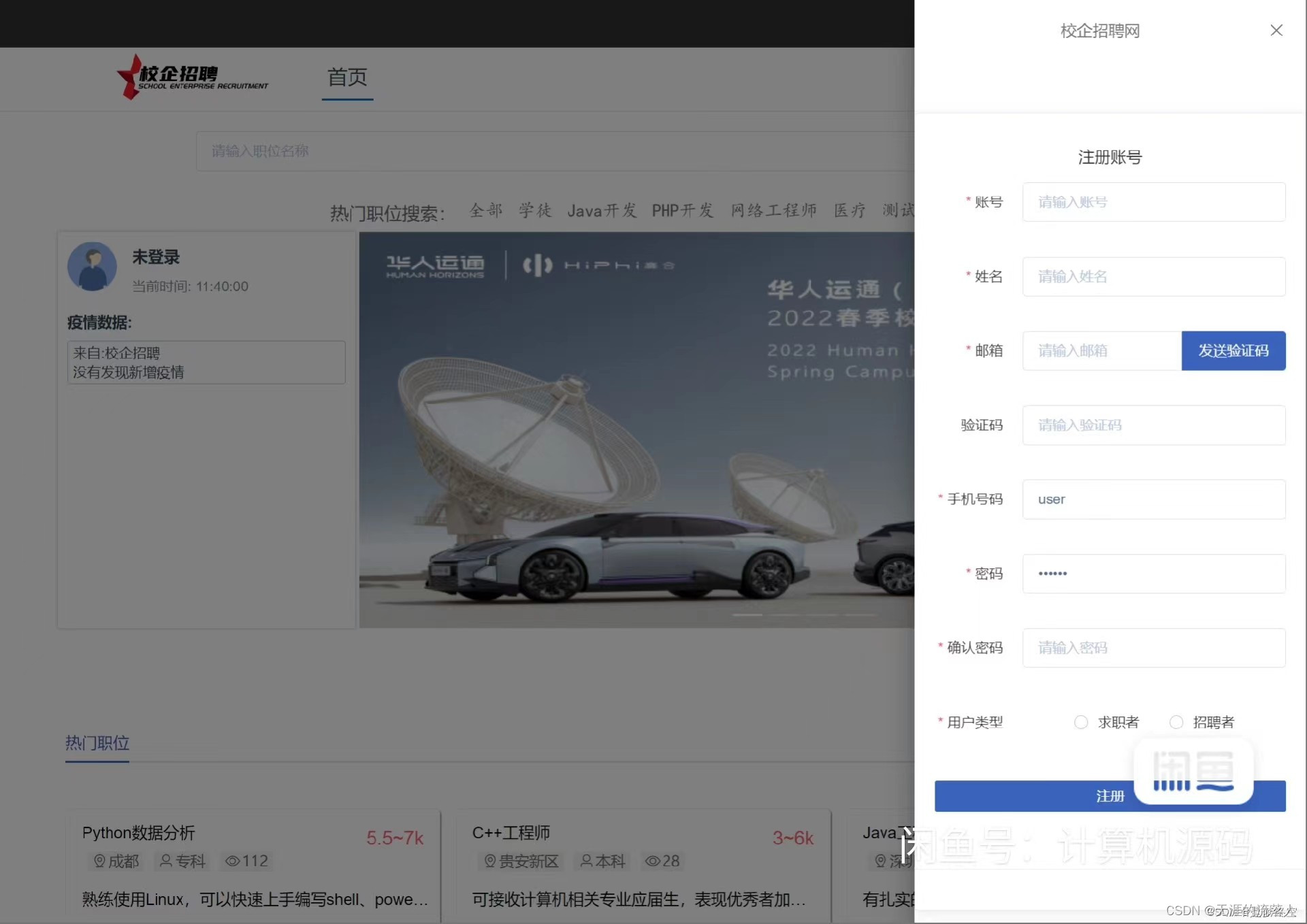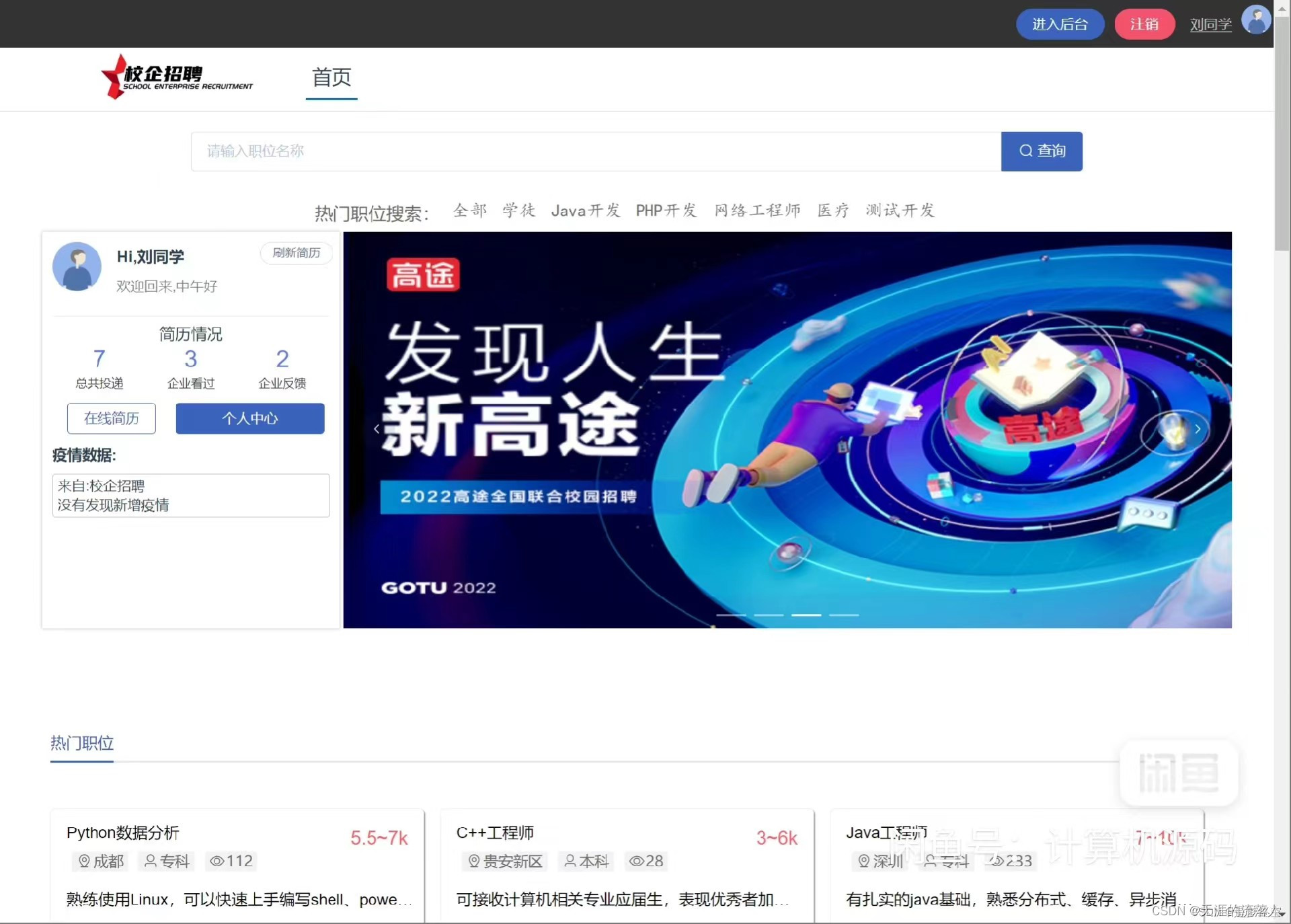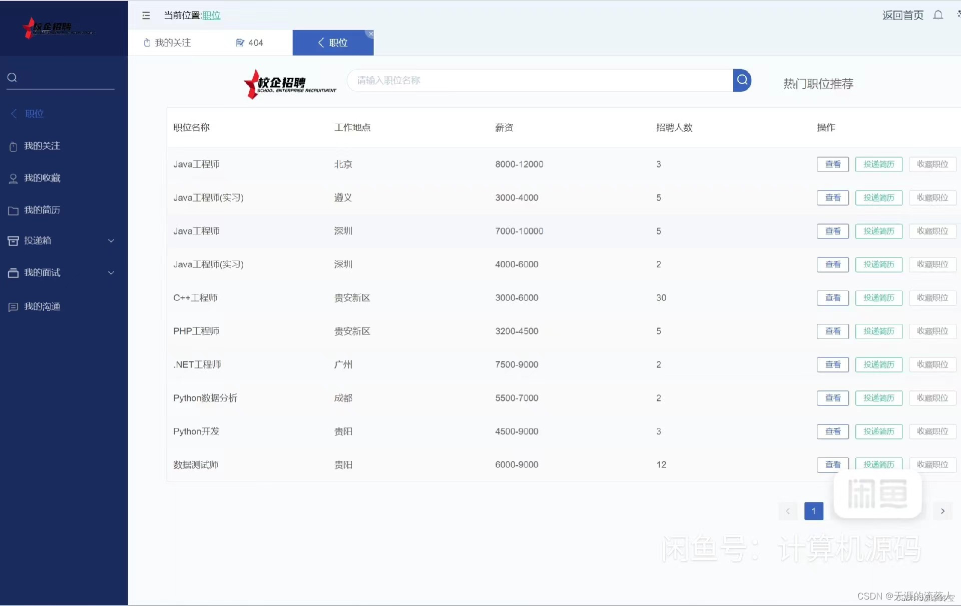 登录、注册、简历(搜索、投递和收藏)、hr联系、我的关注、我的收藏、我的简历、简历投递管理、面试管理、个人中心、密码修改