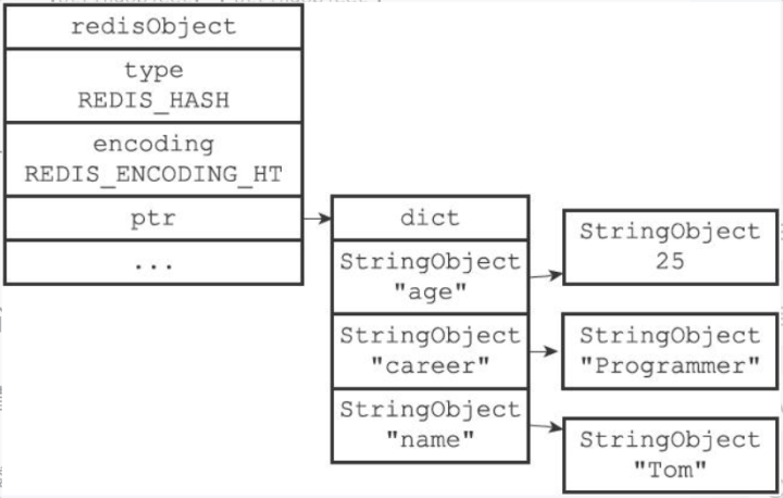 typedef struct dict { // 类型特定函数 dictType *type; // 私有数据 void * privdata; // 哈希表,代表两个哈希表 dictht ht[2]; // rehash索引 // 当rehash不在进行时, 值为 - 1 in trehashidx; /*rehashing not in pro gress if rehashidx==-1*/ }dict; ------------------------------------------------------- typedef struct dictType{ //计算哈希值的函数 unsigned int (*hashFunction)(const void * key); // 复制键的函数 void *(*keyDup)(void *private, const void *key); // 复制值的函数 void *(*valDup)(void *private, const void *obj); // 对比键的函数 int (*keyCompare)(void *privdata , const void *key1, const void *key2) // 销毁键的函数 void (*keyDestructor)(void *private, void *key); // 销毁值的函数 void (*valDestructor)(void *private, void *obj); }dictType