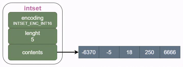 intset:集合对象保存的所有元素都是整数值且元素数量小于 512 个