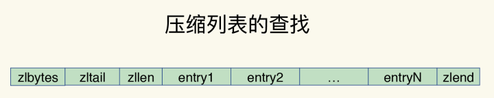 如果查找的是第一个元素或最后一个元素,可通过表头三个字段的长度直接定位,复杂度是 O (1)。而查找其他元素时,只能逐个查找,复杂度是 O (N) 。