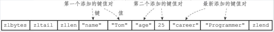 倒序遍历:首先指针通过 zltail 偏移量指向表尾节点,然后通过指向节点记录的前一个节点的长度依次向前遍历访问整个压缩列表。