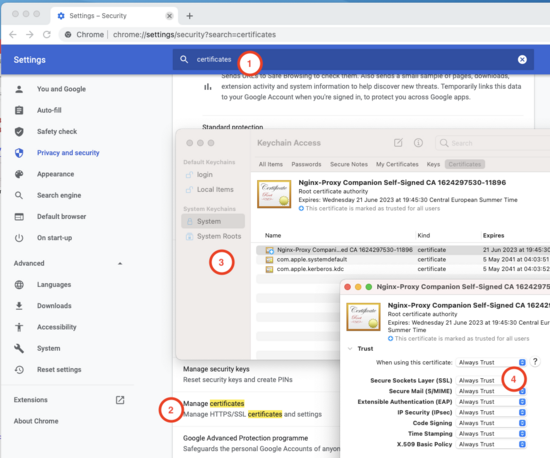 双击 Nginx-proxy Companion 证书为 Always Trust。