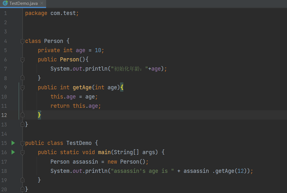 System.out.println("assassin's age is " + assassin .getAge(12));