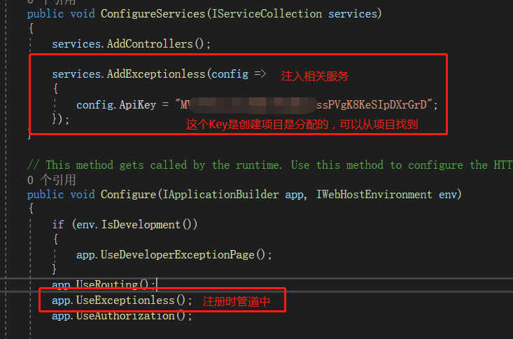 在Startup.cs文件中进行注入相关服务并注册到管道中,如下: