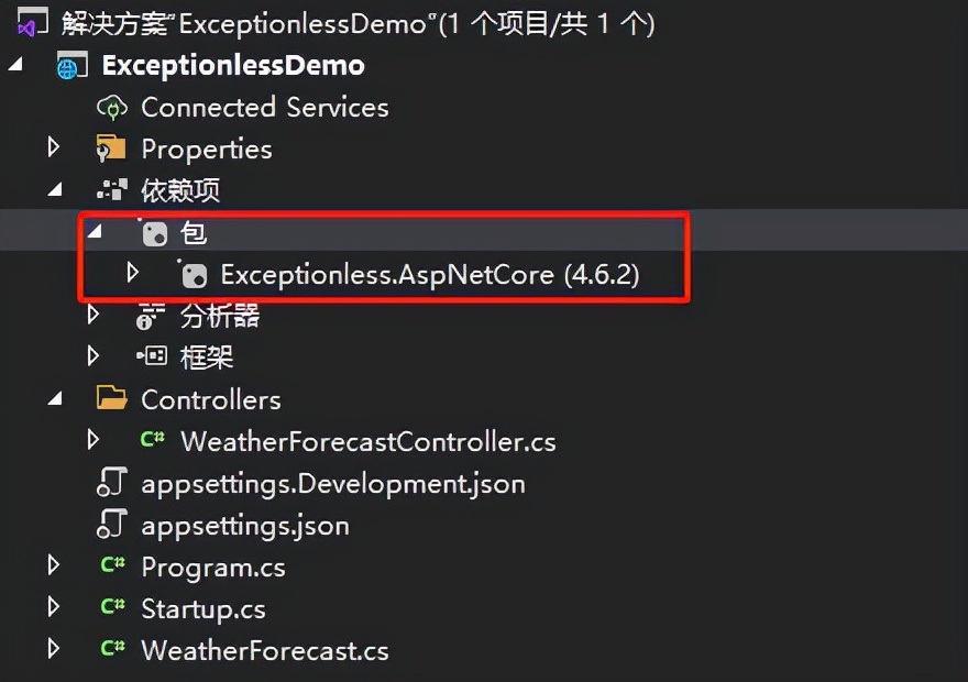 这里创建了一个WebAPI项目,引入Exceptionless.AspNetCore 即可;