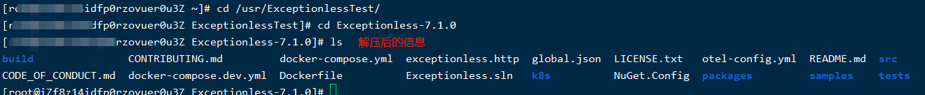 https://github.com/exceptionless/Exceptionless/releases),推荐7.1.0版本,7.1.1的折腾了我好久,要么脚本执行不成功,要么缺少文件;然后拷贝到对应的Docker主机上解压,如下:
