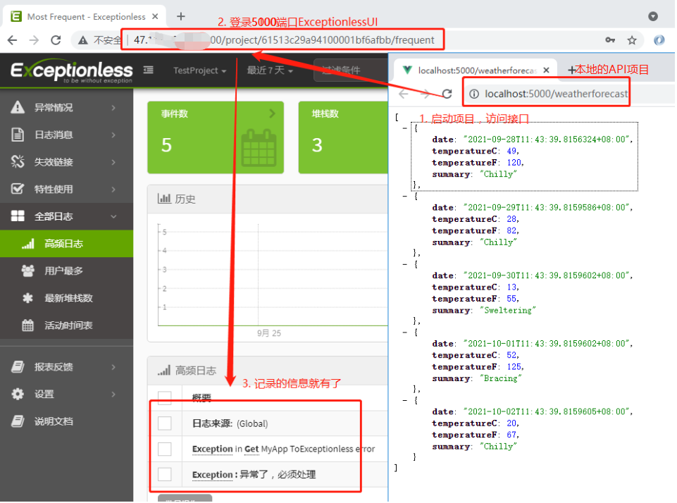 https://exceptionless.com/),就会看到对应的异常信息了,如下: