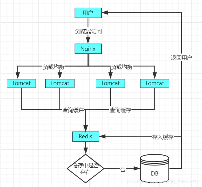 缓存雪崩的原理图如下,当正常的情况下,key没有大量失效的用户访问原理图如下:
