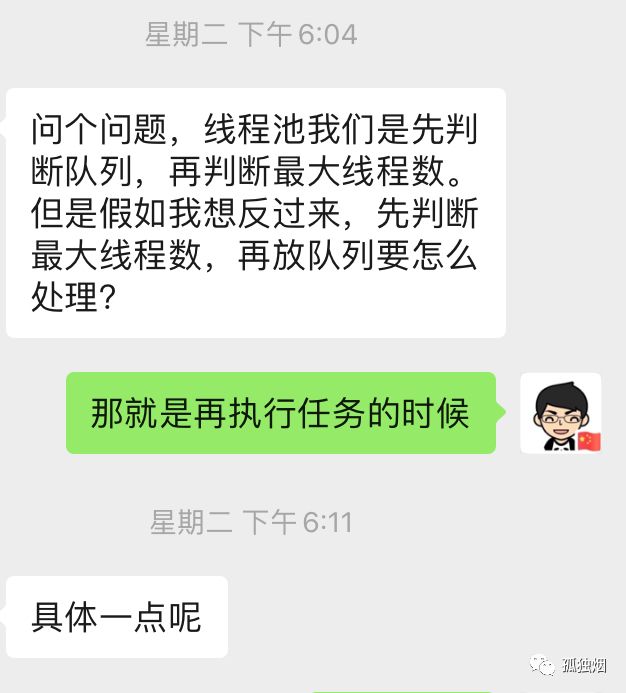 因此,如果按照这么一套机制,粉丝豪的答案就不正确了。当100个任务添加进来时,直接会起20个线程,剩下80个任务都丢进队列!