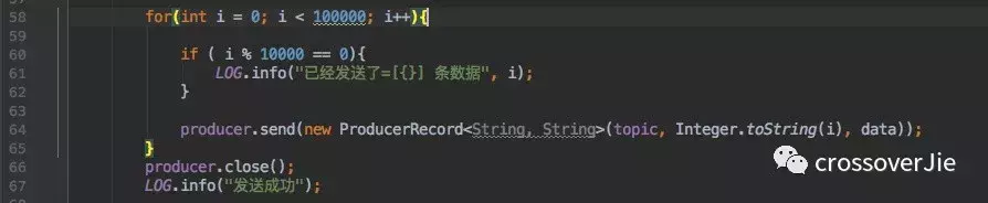 这里我给某一个 Topic 发送了 10W 条数据,运行程序消息正常发送。
