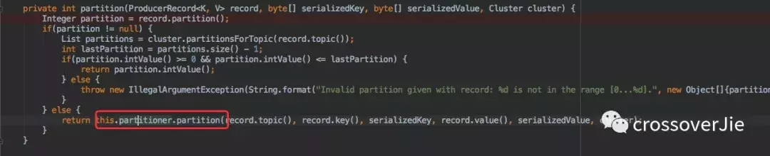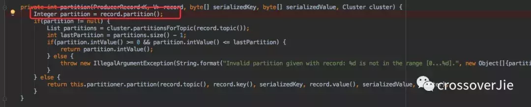 如果没有指定分区,则会调用 partitioner.partition 接口执行自定义分区策略。