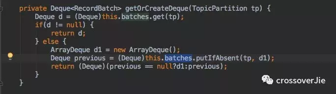 该函数中会调用一个 getOrCreateDeque() 写入到一个内部缓存中 batches。