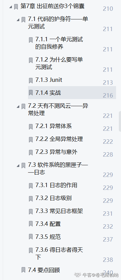第7章包含3方面内容,即单元测试、异常处理和日志。这“三驾马车”可以为你的系统保驾护航,快速定位问题。