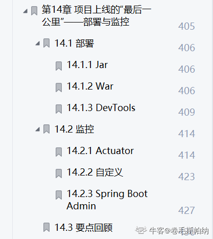 第14章介绍Spring Boot的监控组件Actuator,并演示如何与SpringBoot Admin整合使用。