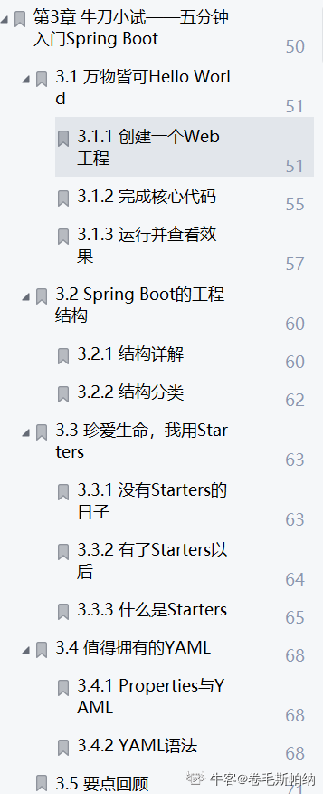 第3章通过一个Hello World示例引出Spring Boot的工程结构,并对Starters和YAML进行了详细讲解。
