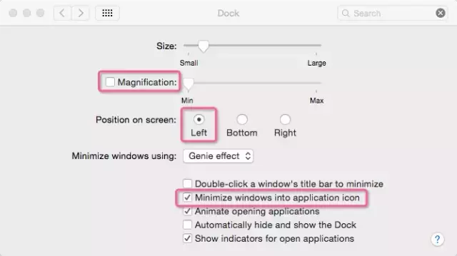 - 关闭Magnification特效(即鼠标放到Dock上图标放大的效果,此效果干扰注意力)