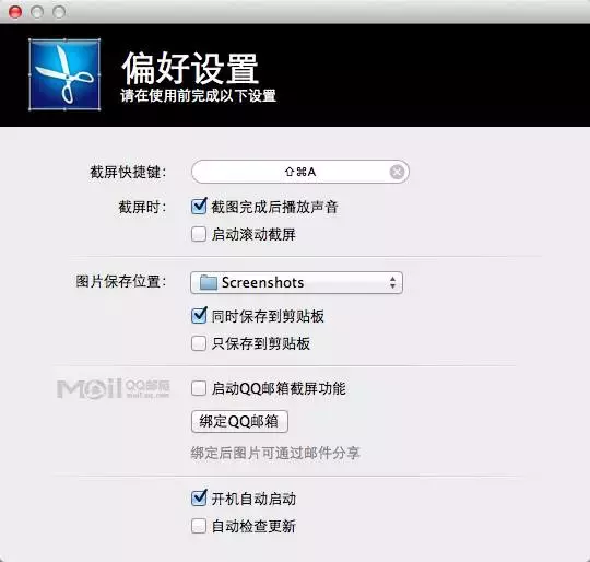 Snip完整地继承了QQ里截图功能, 设置为开机启动后, 任何时候都可以通过相同的快捷键--Ctrl+Command+a来截图, 此外,快捷键可以手动修改: