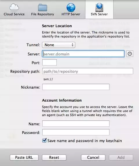 CornerStone是Mac OS X系统下非常好用的一款svn工具. 打开后点击左下角+号添加Repositorys.