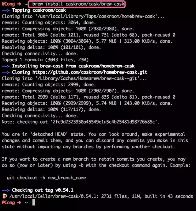 Homebrew Cask就是这样一款终端下的程序管理器,它扩展了Homebrew,作为Mac App Store的有益补充,方便你快速维护日常软件的安装升级和卸载,复制如下命令在终端下运行,按回车后等待安装成功: