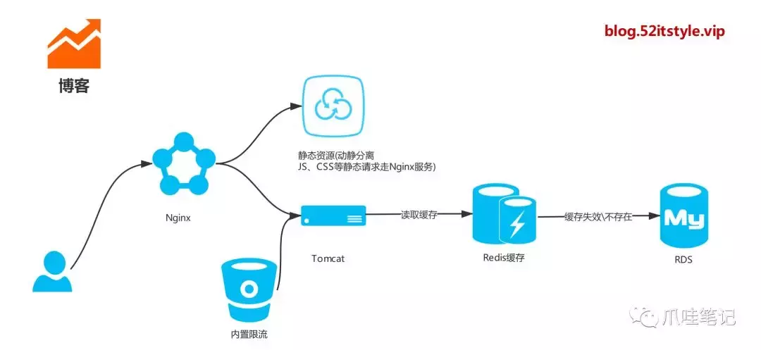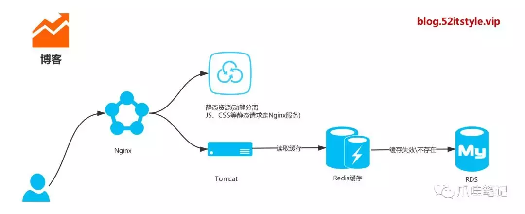 系统开始是这样子的,一个 Tomcat 拖着一个 MySql 服务,跑在一个 2C 4G 的Linux服务器上,所有的请求都走 Tomcat,所有的查询都走 MySql,看起来像一句废话?