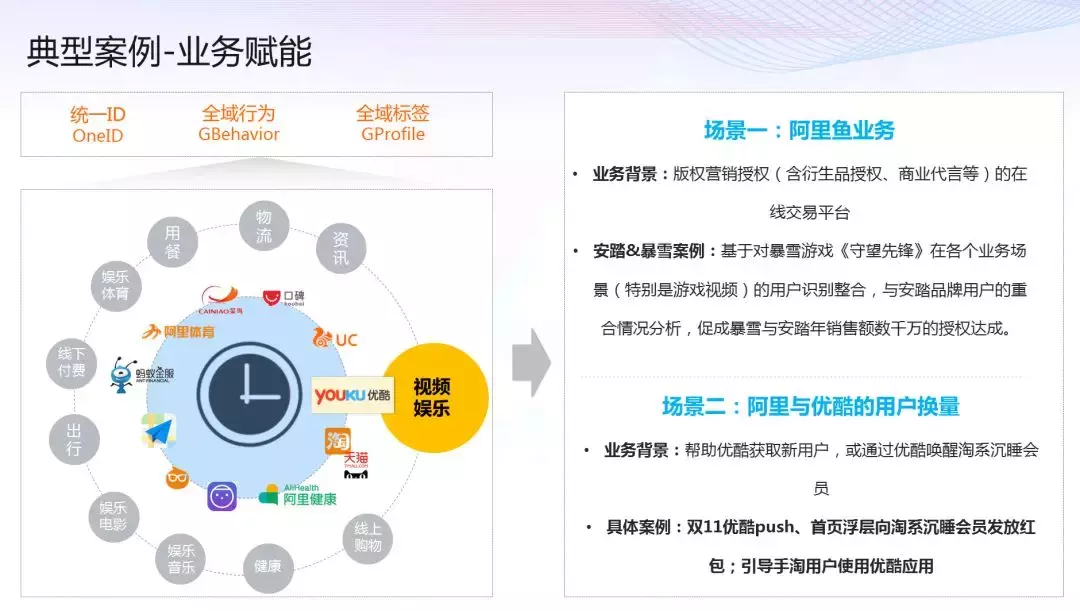 这张图其实就是我们从Hadoop迁到MaxCompute平台上以来,两个非常经典的案例。我们通过数据中台对不同场景的用户打通,来去赋能到两个不同的场景,提升业务价值。
