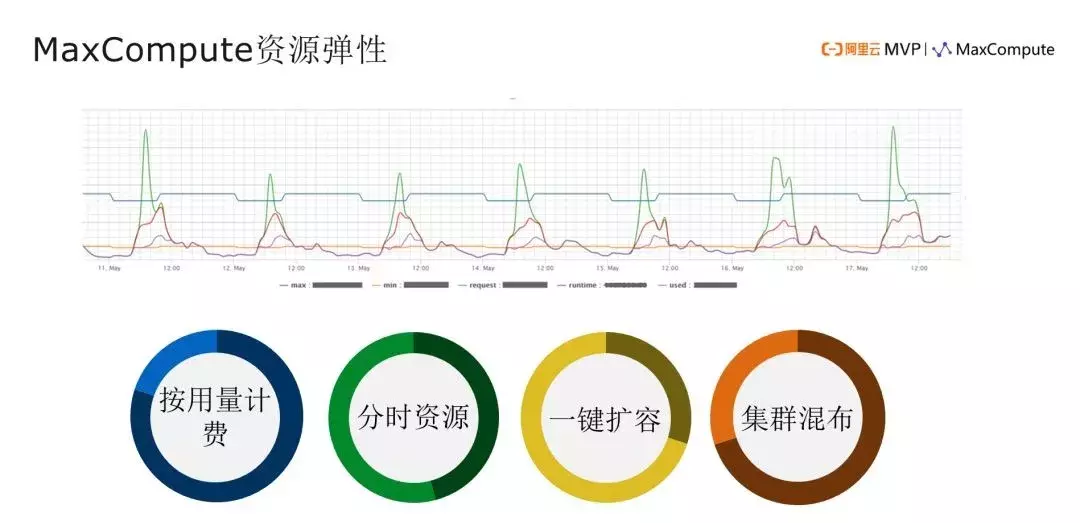 第二个,实际上MaxCompue计算资源是可以分时的,比如说生产队列,凌晨的时候会调高一些,保证报表能够尽快出来。到白天时候,让开发的计算资源高一些,可以让分析师、开发去临时跑一些数据,会更顺畅一些。