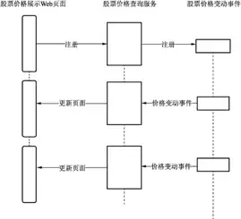 也就是说,在加载股票价格页面后,这个页面会有一个专属ID注册到股票查询服务上。一旦使股票价格发生变化的事件产生,这个事件(Event)就会触发响应,最新的股票价格就会在Web页面上进行更新显示。如图1-2所示说明了整个流程。