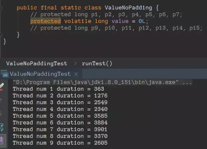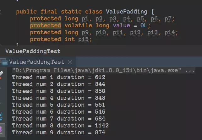 利用字节填充来解决伪共享,从而速度快了3倍左右。