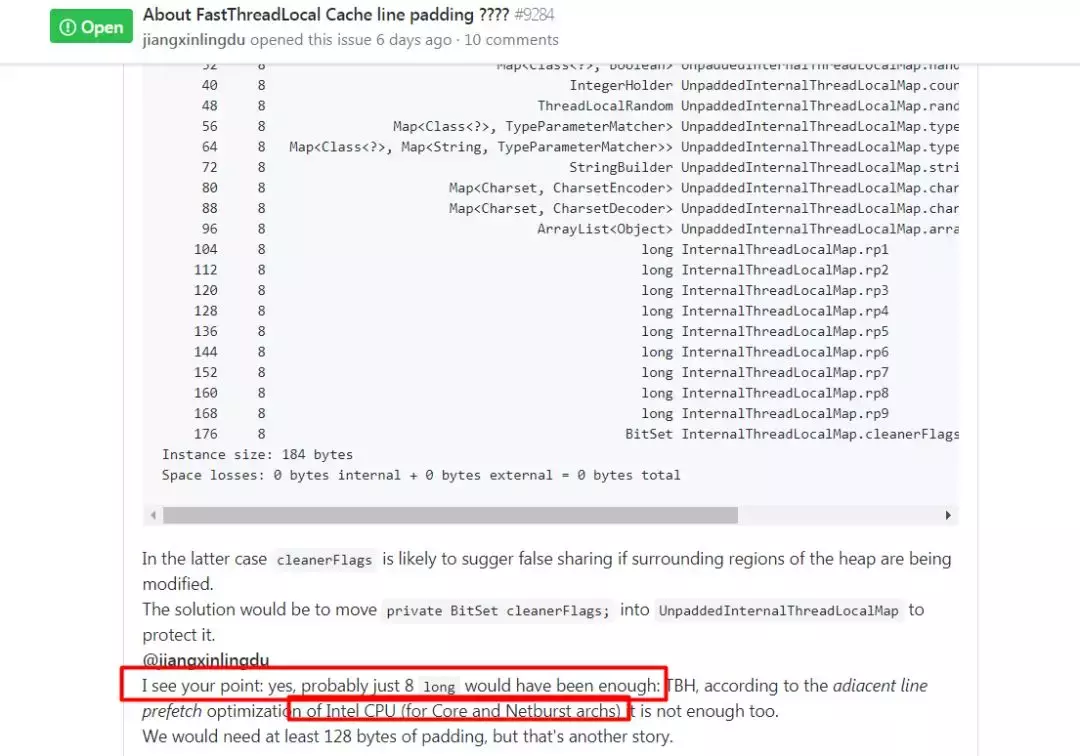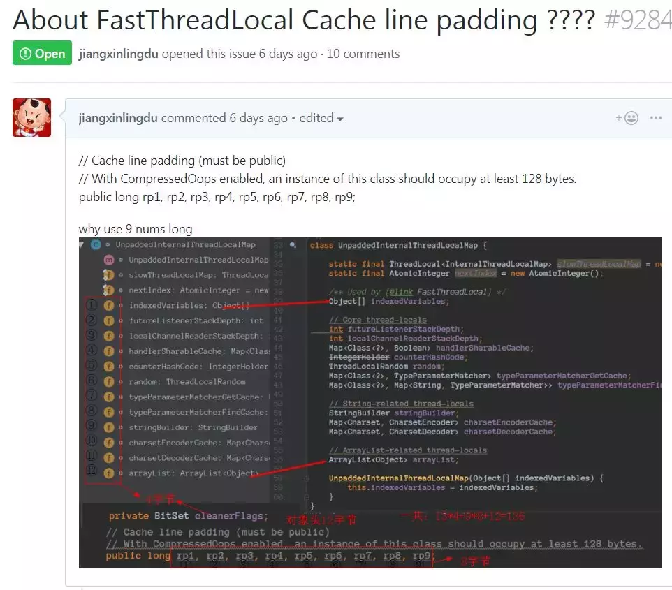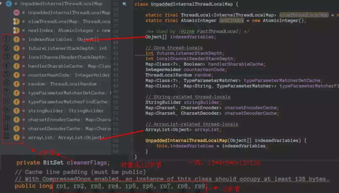 之前介绍ThreadLocal的时候,说过ThreadLocal是用在多线程场景下,那么FastThreadLocal也是用在多线程场景,大家可以看下这篇:手撕面试题ThreadLocal!!!,所以FastThreadLocal需要解决伪共享问题,FastThreadLocal使用字节填充解决伪共享。