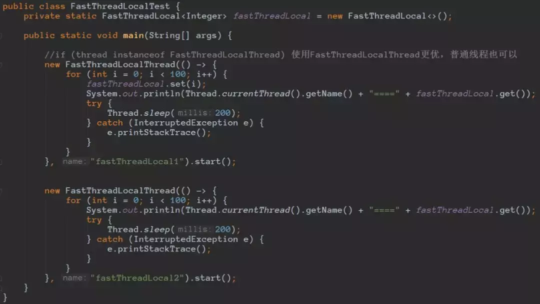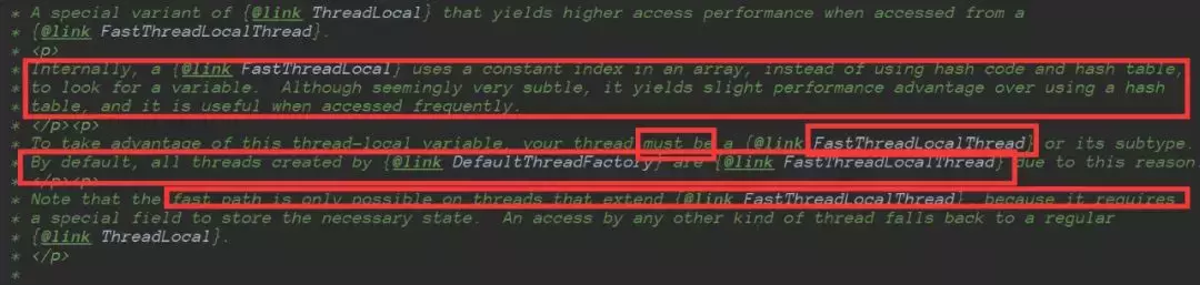 注意: 如果使用FastThreadLocal就不要使用普通线程,而应该构建FastThreadLocalThread,关于为什么这样,关于这块将在本文后面进行介绍:FastThreadLocal并不是什么情况都快,你要用对才会快。