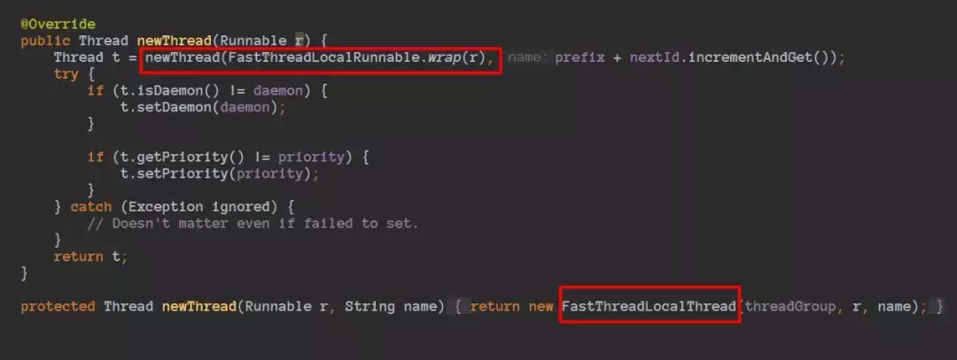 看到这里,和刚刚我们看到的注释内容一致的,是使用FastThreadLocalThread的。