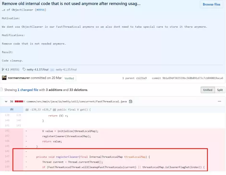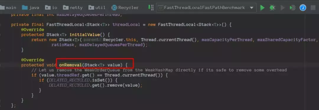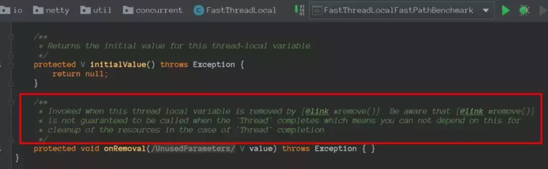 备注: FastThreadLocal不在使用ObjectCleaner处理泄漏,必要的时候建议重写onRemoval方法。关于这块将在本文后面进行介绍,这样是很多网上资料比较老的原因,这块已经去掉了。