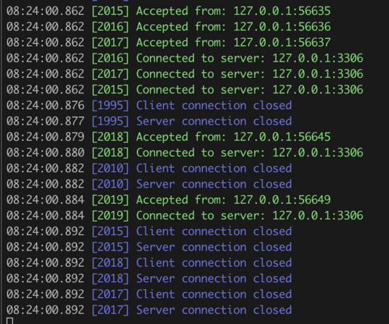 $ docker run --rm -it -p <listen-port>:<listen-port> -p <remote-port>:<remote-port> kevinwan/tproxy:v1-arm64 tproxy -l 0.0.0.0 -p <listen-port> -r host.docker.internal:<remote-port>